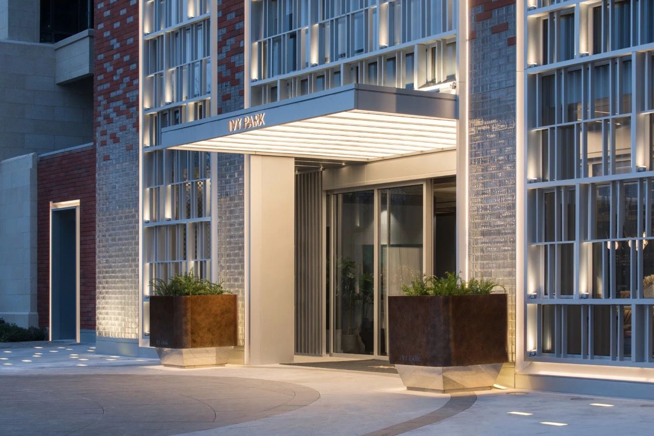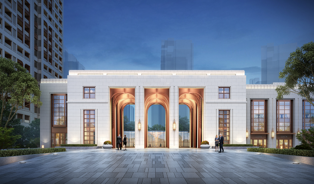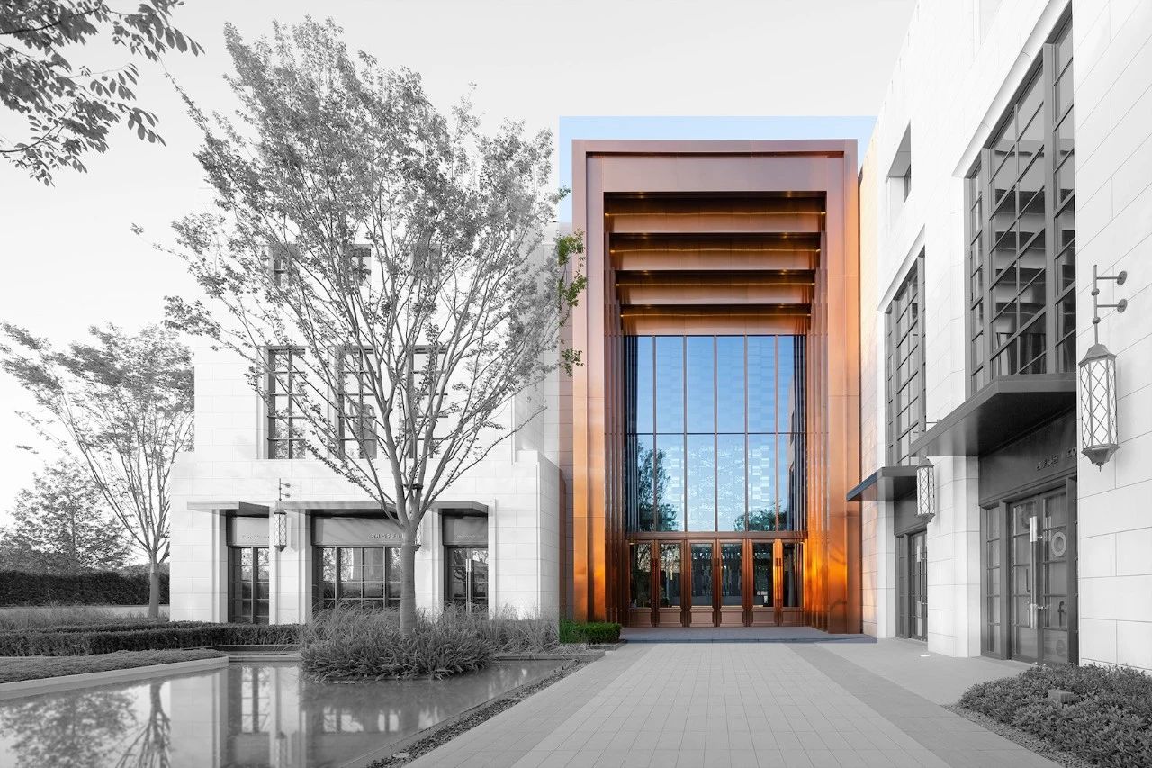 常州·万科·四季都会,都易擅长的经典都会立面与递进式门廊的碰撞,运用现代手法的拉丝仿铜,混搭传统石材,使现代构图遇上经典比例,时尚与经典这一刻有机的融合。