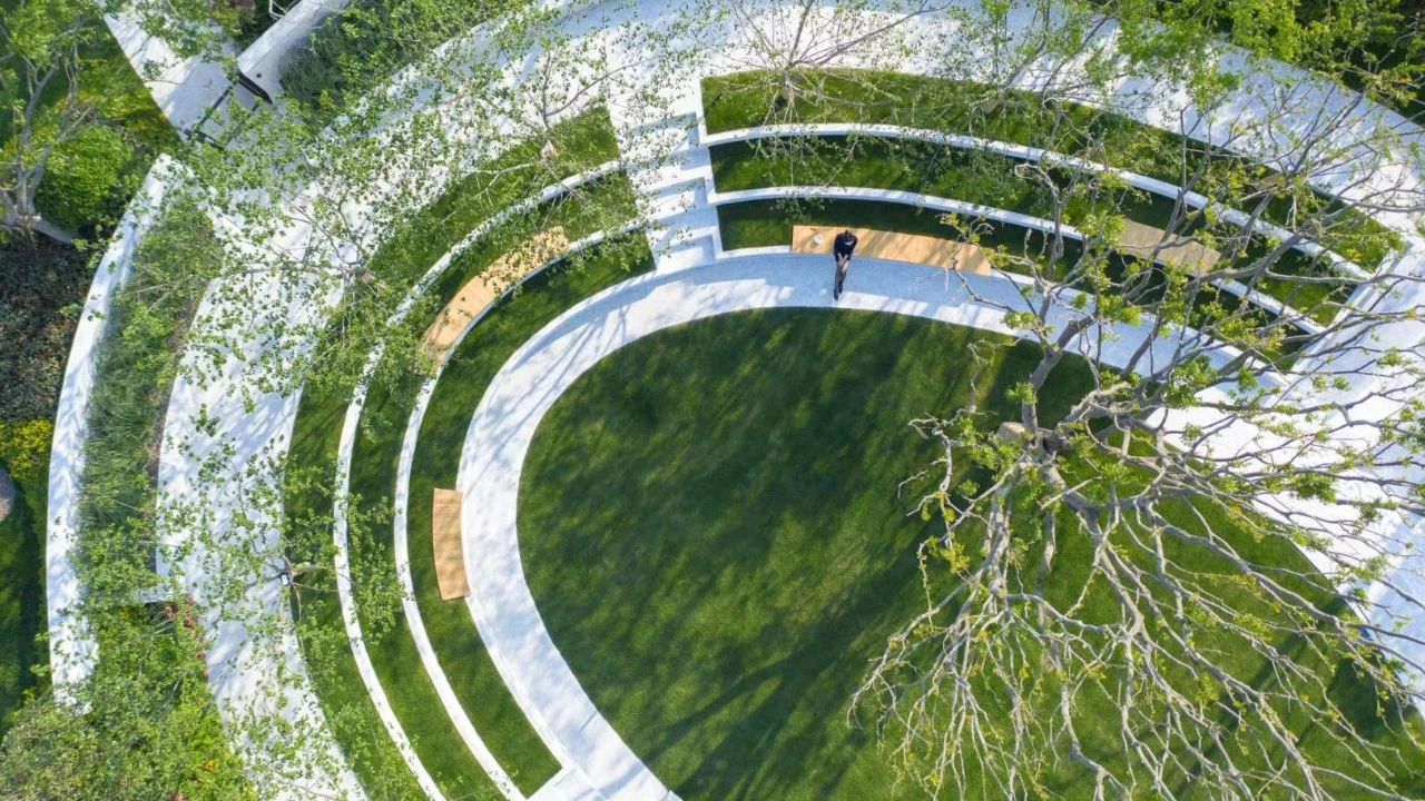 示范区的最后是内漩涡状的大花园,层层叠叠,细腻的构图搭配经典建筑,绿植、空间、光线、庭院、线型,从多感官的角度激发自然主义的美学感受。