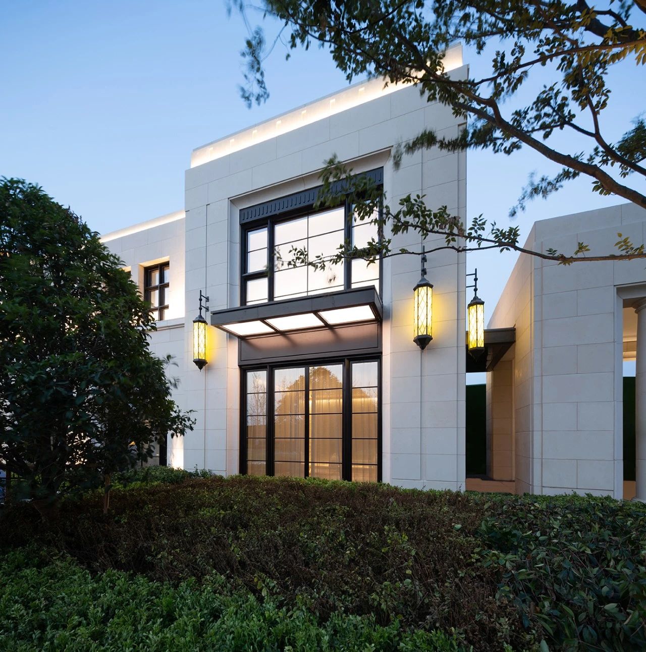 在古典三段位置定制灯饰,在建筑整体简洁的氛围中展现华丽之笔