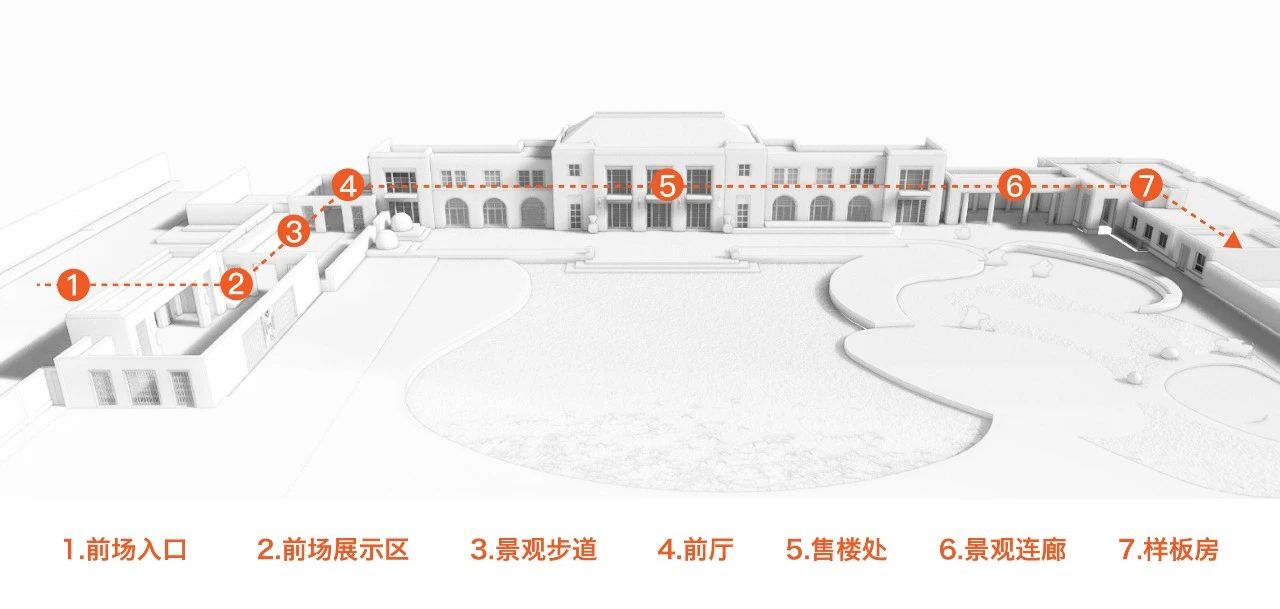 在徐州中山都会的示范区,建筑一层仅设置接待大厅,以小体量减少对大区中庭景观的介入,建筑主体功能结合地景设置于地下一层,后期可改造为社区地下会所。接踵而来的问题是:如何在这么小的体量内,依然能够完善地实现全程展示和产品体验?
