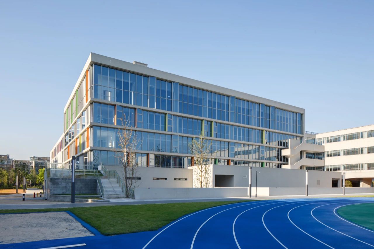 Hangzhou Chongwen Experimental School is comprised of 36 classrooms of primary school and 12 classrooms of kindergarten. The whole architectural complex is arranged according to the long-shaped base and is divided vertically into three functional divisions with primary school, kindergarten and dormitories from south to north, and the playground is set at the northeast side. It is a mixed-use building that combines different teaching spaces and auxiliary spaces, which functions as an intensive and effective education space.