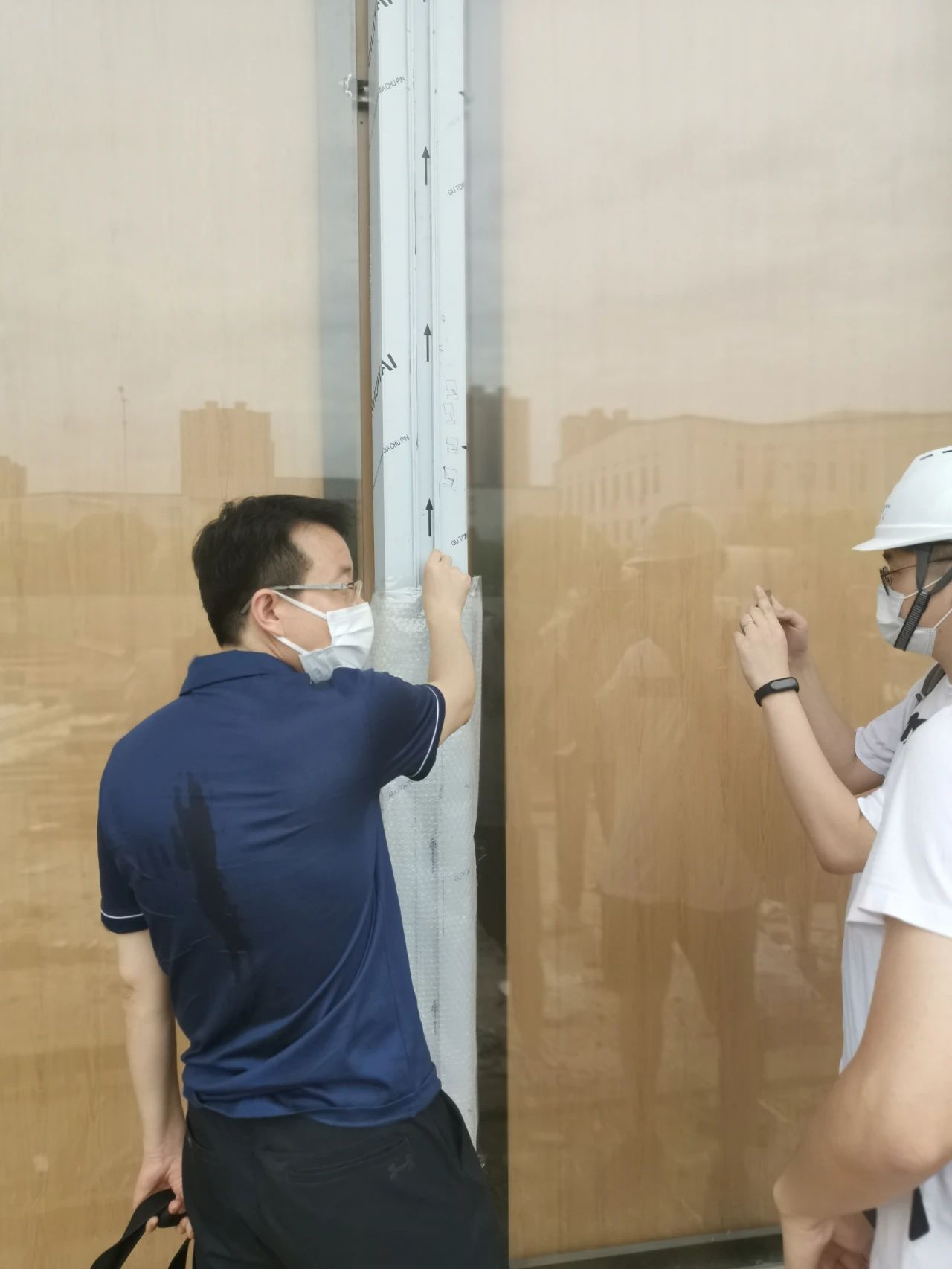 在施工团队负责人刘鑫的陪同下,都易员工对整个示范区的动线进行了考察,同时总建筑师杨锋从细部节点与构造,设计思路与来源,效果呈现与造价等几个方面为员工进行现场讲解。