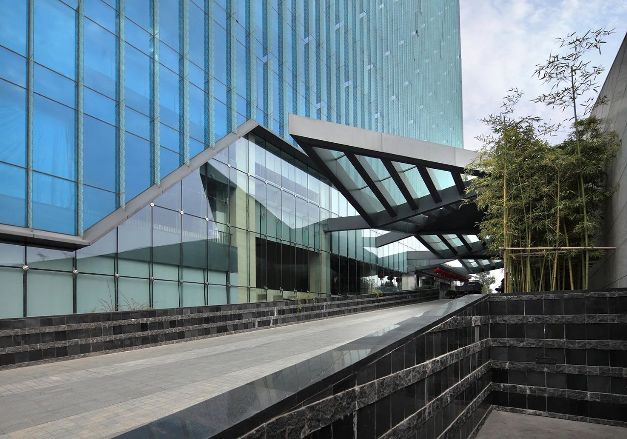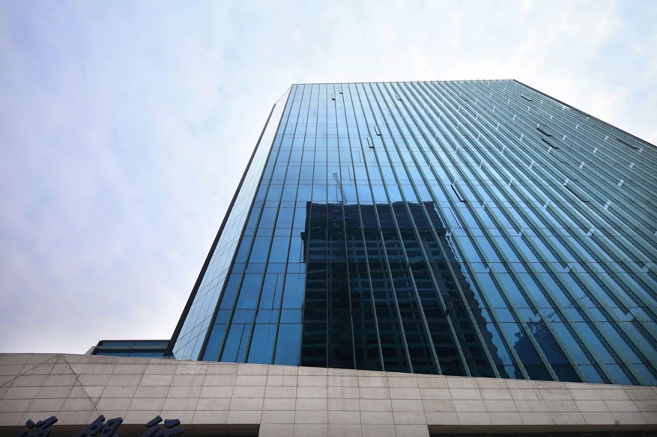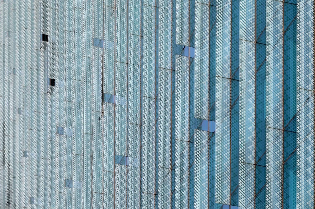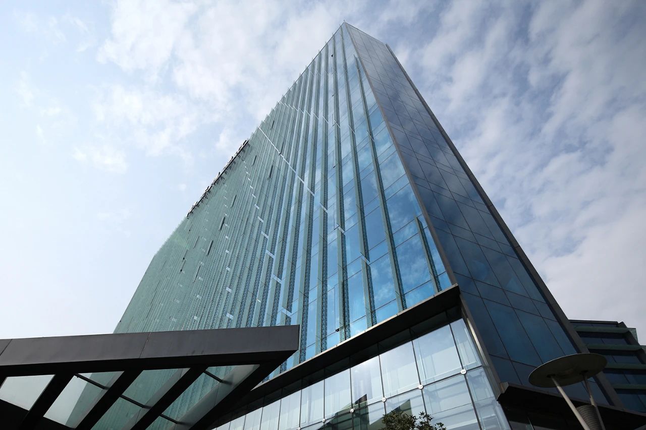 蓝鲸国际这座建筑的规划体量并不算高大出众,虽然是高层建筑,但是较大的面宽影响了体态的纤美感。作为解决策略,都易设计大胆而谨慎的对建筑体量进行了“切割”,同时对于玻璃幕墙的立面细节进行了符号学的推敲,这就使得蓝鲸国际创新的建筑形态以功能性为设计前提,融艺术与实用于一身。