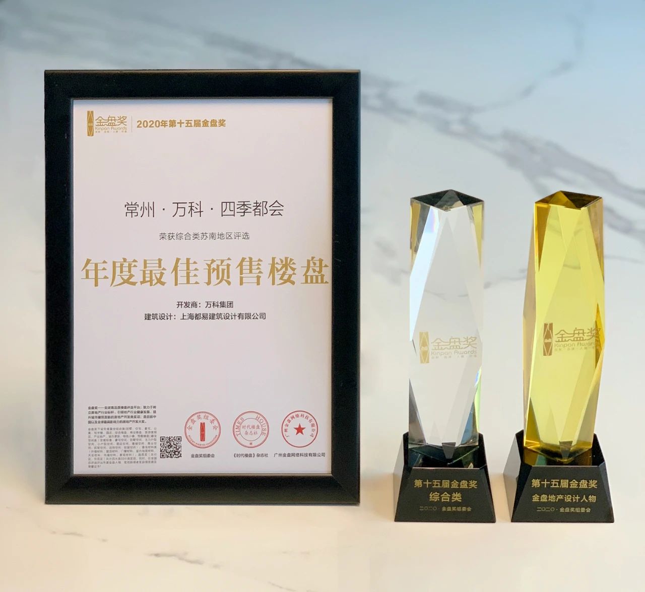 都易设计作品常州·万科·四季都会在第十五届金盘奖中,从4600+个申报项目和2455个入围项目中脱颖而出,获得了第十五届金盘奖苏南赛区年度最佳预售楼盘,公司创始人杨锋先生喜获第十五届金盘奖年度建筑设计人物。