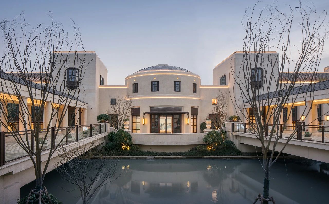 此时,空间的路径开始戏剧性地形成回路,访客可以继续前行抵达样板房,也可通过跨水长廊,深入社区地形,体验临水栈道的江南韵味。