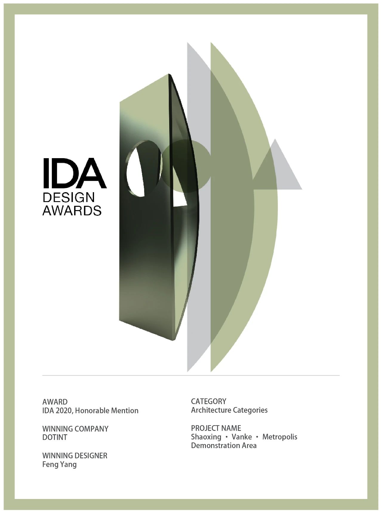 美国IDA国际设计奖(International Design Award)是美国最具权威的国际设计大奖之一,2007年创办于美国加州,倡导设计的可持续性、科学性、智能性,评选条件十分严格。该奖项设置覆盖建筑设计、室内设计、产品设计、时尚设计、平面设计等五个门类。偏重视觉设计与新潮议题,被称为世界各大知名设计奖项的“风向标”。