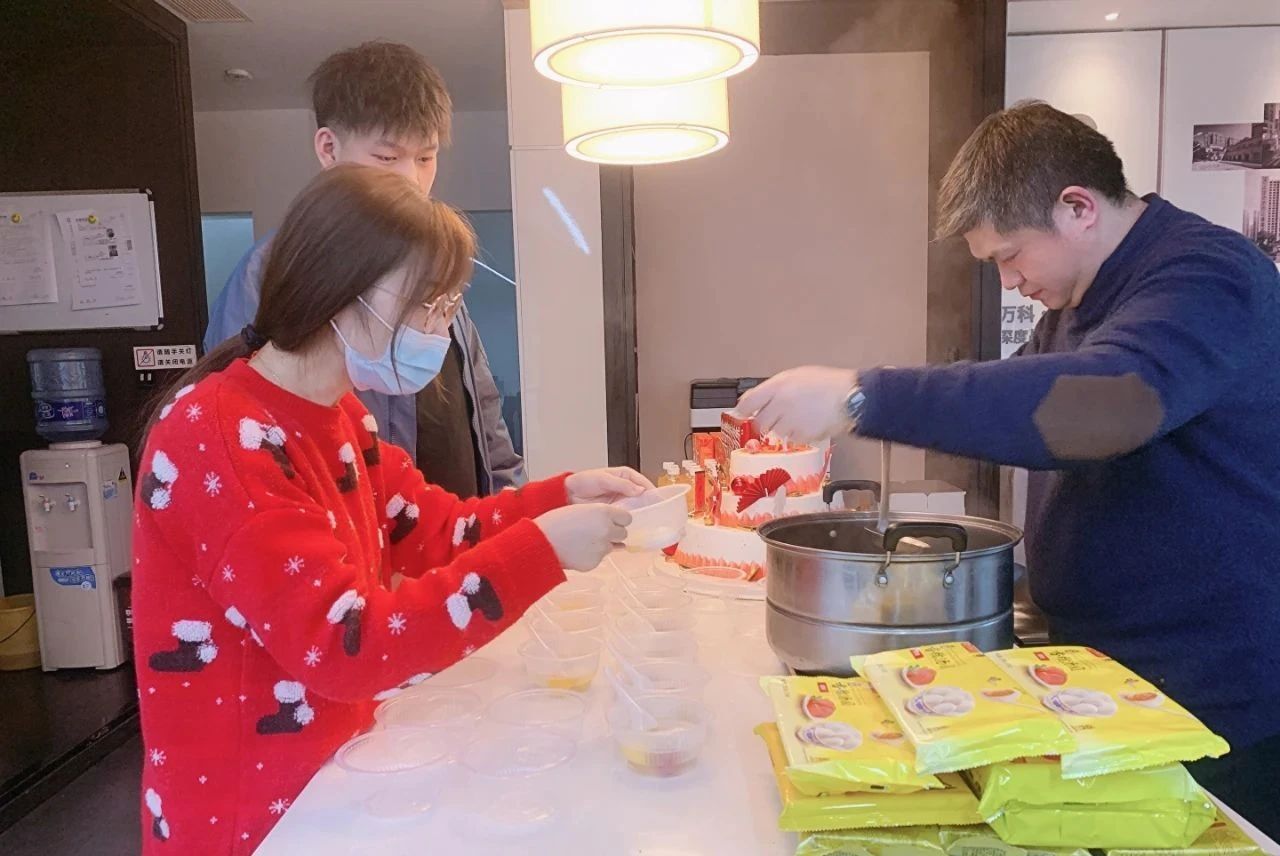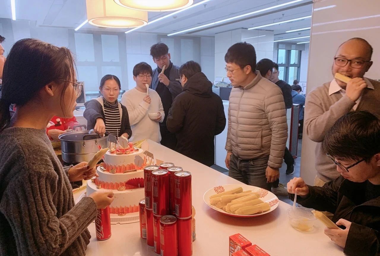 吃完汤圆,将象征着公司2021年红红火火、招财进宝的大蛋糕与小伙伴们一同分享,当大家正在品尝美食的甜蜜时,接到了甲方通知我们项目中标的喜讯,顿时公司洋溢在一片喜庆的海洋中,收获的喜悦更加的甜蜜!!!
