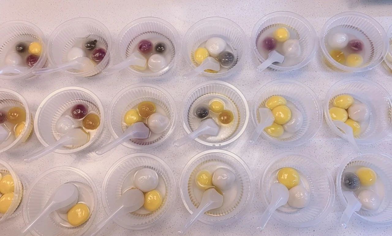 除了传统的芝麻、花生味,紫薯水晶汤圆、芝士榴莲汤圆也冲击着小伙伴们的味蕾。压轴的鲜肉汤圆更是让公司的北方小伙伴们打开了一个新世界,原来汤圆还有肉馅的。