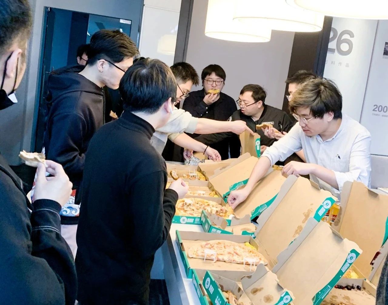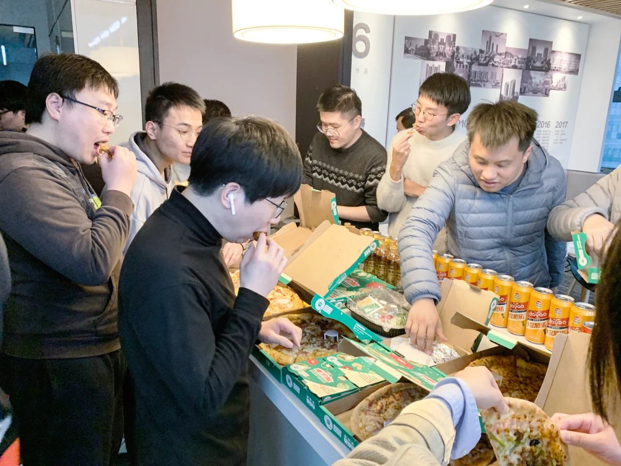 虽然唱歌不算太激烈的运动,团建活动没有美食,团建就不那么完美了。都易伐木累这次为小伙伴们准备了各式披萨和德国咸猪肘、香肠等美食,佐以秋林格瓦斯、内蒙古经典饮料大窑,让小伙伴们大快朵颐。