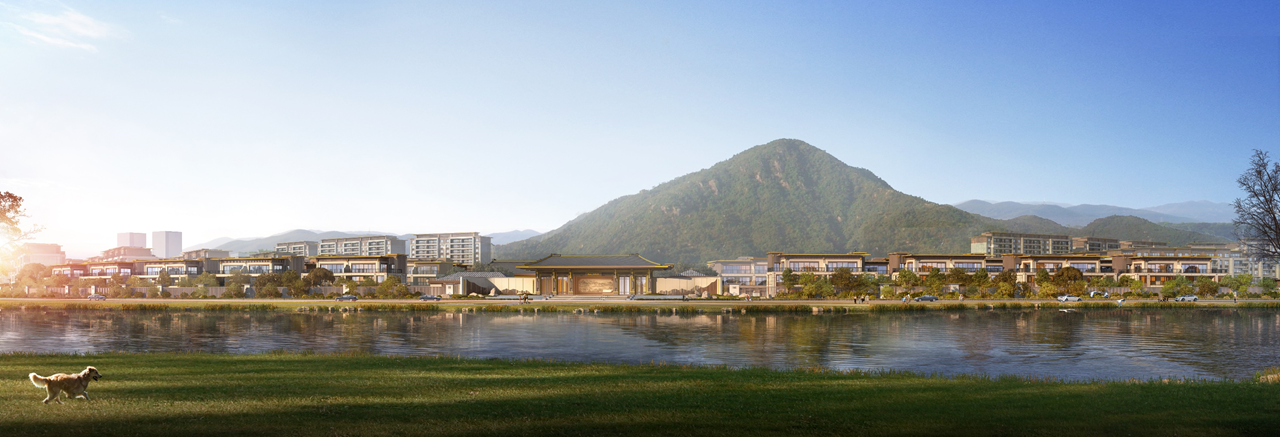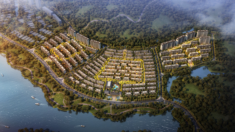 敔山湖项目地处江苏省江阴市,项目选址依山傍水,建发集团设定的项目愿景为:“湖山一色,宅园两得”。