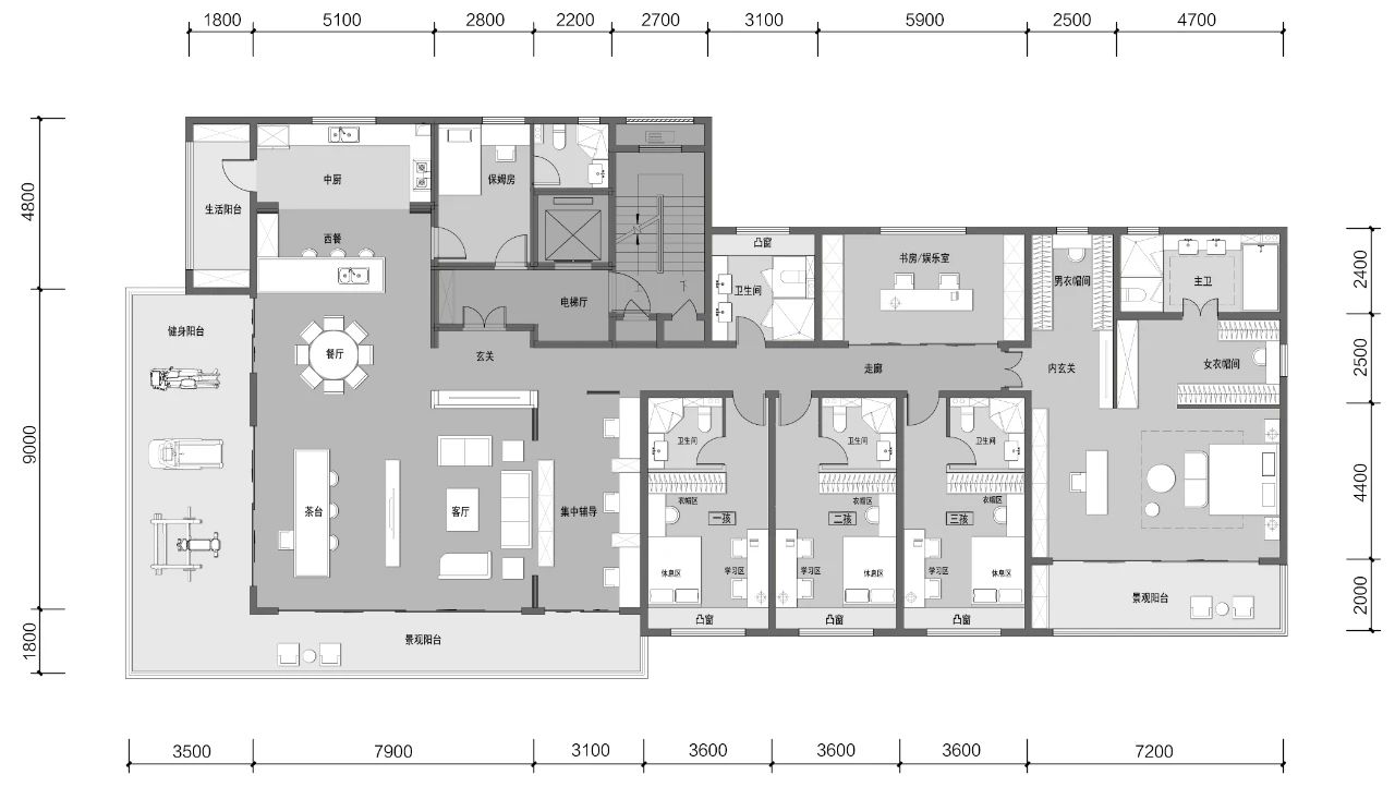 单纯从设计师的角度出发,研究一下三胎家庭户型的变化也是一件非常有趣的事情。