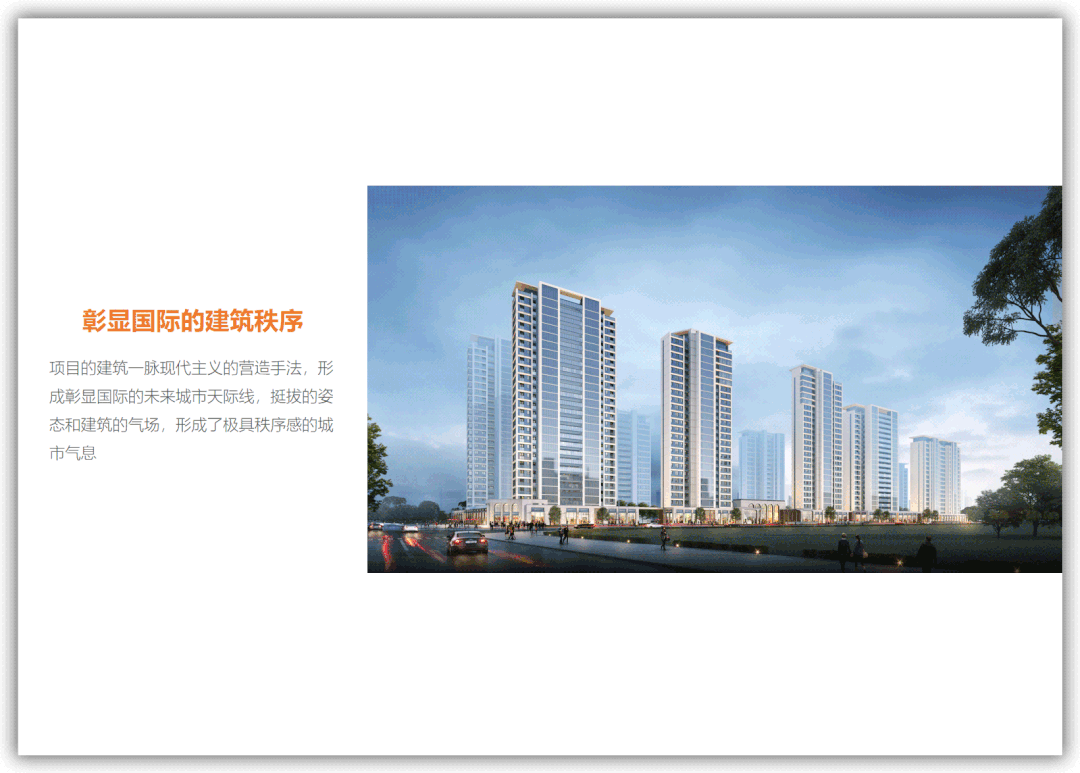 作为一个现代风格的建筑作品,本次的设计手法杨总概括为:彰显国际的建筑秩序、纯粹高阶的色彩美学、山水画卷的当代表达。并通过温暖的国际、线条的艺术、会呼吸的建筑、超平面设计、超纤细边框、对称与非对称、生长的桂冠等详细的设计细节、色彩与新材料运用来解析立面设计。