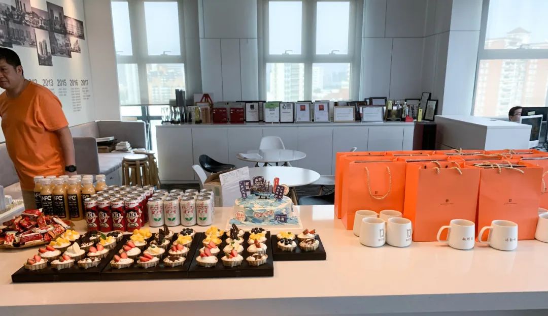 都易贴心的为每位新人定制了精美的入职手礼(有个人专属水杯、速写本、签字笔等),还有漂亮精致的茶点。全方位的让每位新人感受到都易大家庭的温暖。