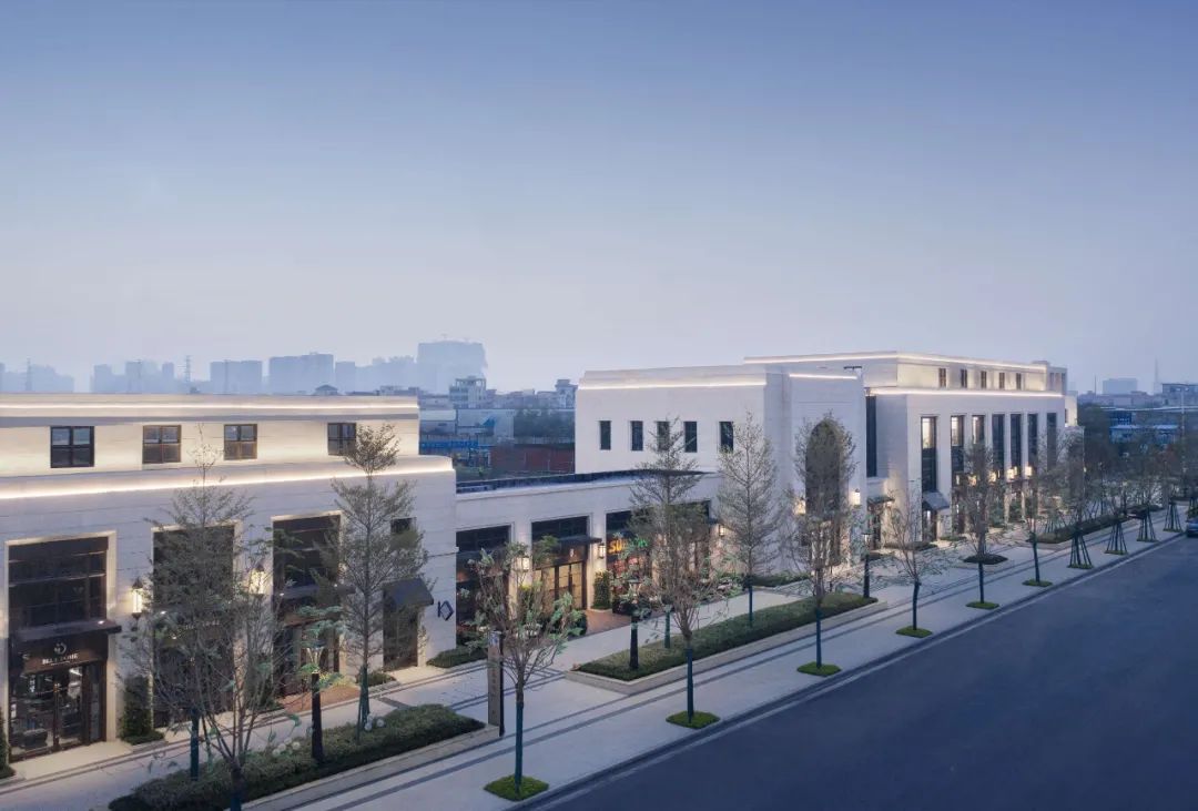 从西南角的精神堡垒开始指引,开放广场是序列的开端;向北是经典都会的风情商业街,随后示范区的主体映入眼帘。生活配套、商业等功能空间独立,结合景观打造成横向舒展的公园,拉长了客户的消费体验流线。城区、街区、住区,在这里融为一体,在商业街中心设置极具仪式感的入口门厅。
