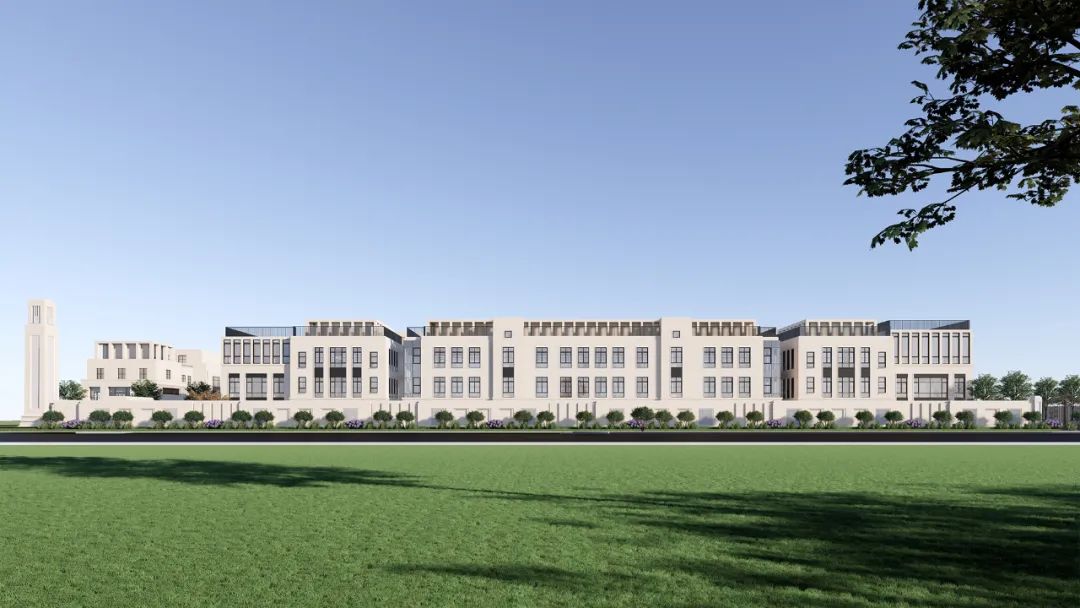幼儿园立面造型继承了整个地块的大都会风格,采用经典对称的构图方式色彩柔和、比例考究、具有均衡感与秩序感。