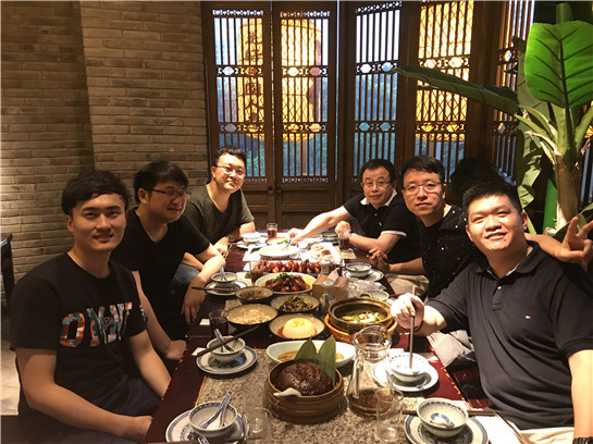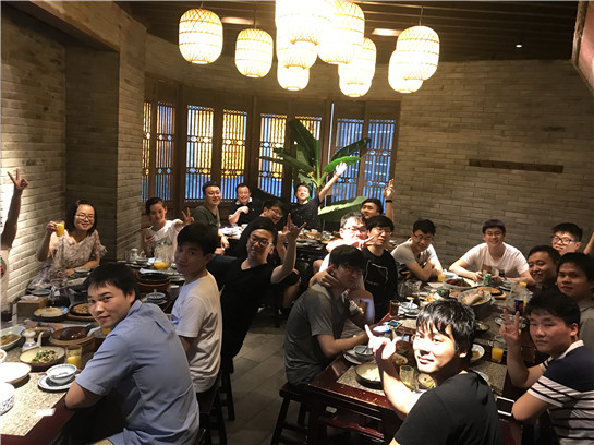 经过一下午激烈的运动,大家都有些饥肠辘辘。公司为大家在极具金陵特色的南京大牌档准备了晚餐,同时也是为上半年入职都易大家庭的新成员接风。