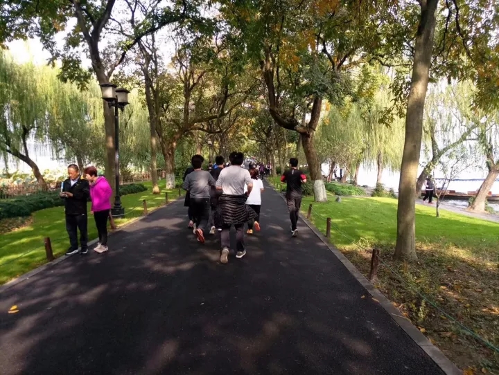 第二天清晨,都易观跑团成员们早起,沿着世界景观文化遗产——西湖进行晨跑拉练,这也是都易创始合伙人杨锋先生一直倡导的健康生活的态度。本次晨跑共计约15公里,最终顺利完成全程的人员从在日本冲绳晨跑时的4人,增加到了7人。