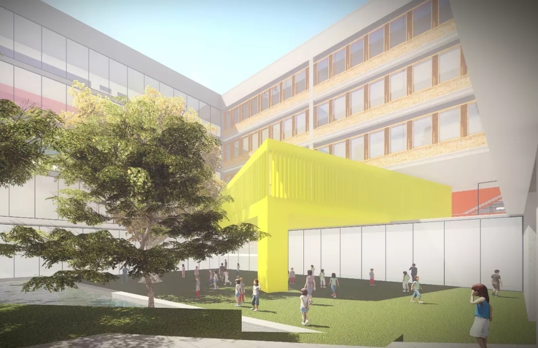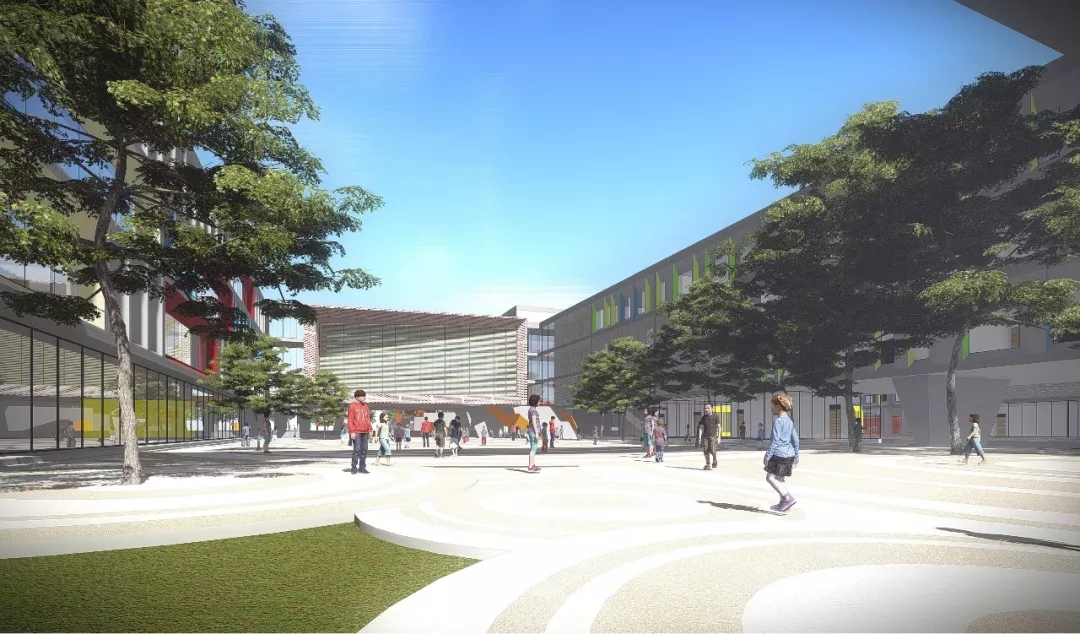 在垂直方向上,内院的下沉设计,使得地下空间具备了良好的采光和通风条件,我们把很多使用率不是最高,但又有很大体量的教育功能移至地下,大大缓解了建筑容积限制和学校需求功能完备之间存在的巨大矛盾。