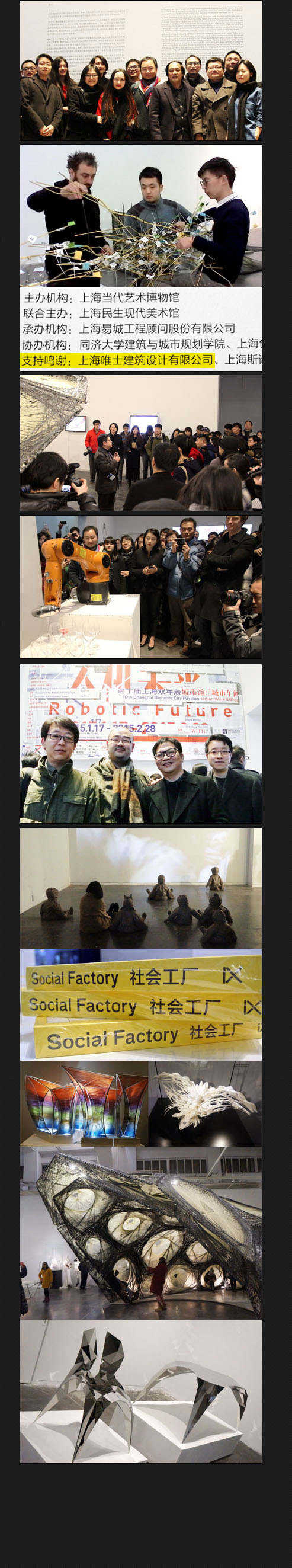 2015年1月17日,都易设计创始合伙人杨锋、副总经理刘念,出席了第十届上海双年展之城市馆(分展场)开幕式。 本次展览主题为“人机未来”,通过艺术、建筑与技术的呈现来为当代人打开心结的方式,为当代人窥探未来人提供了一条可观的视觉途径。