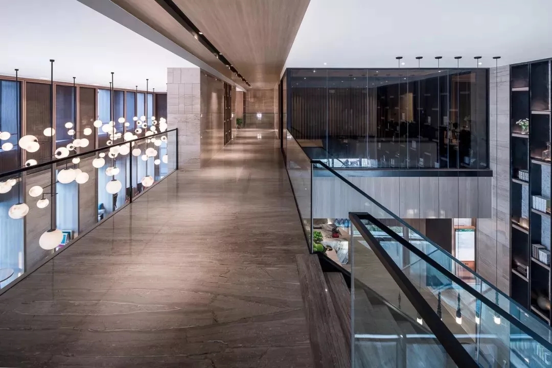 【柱式】与建筑元素统一的墙体连廊柱式,将光线从缝隙中透过,使空间更有韵律感。
