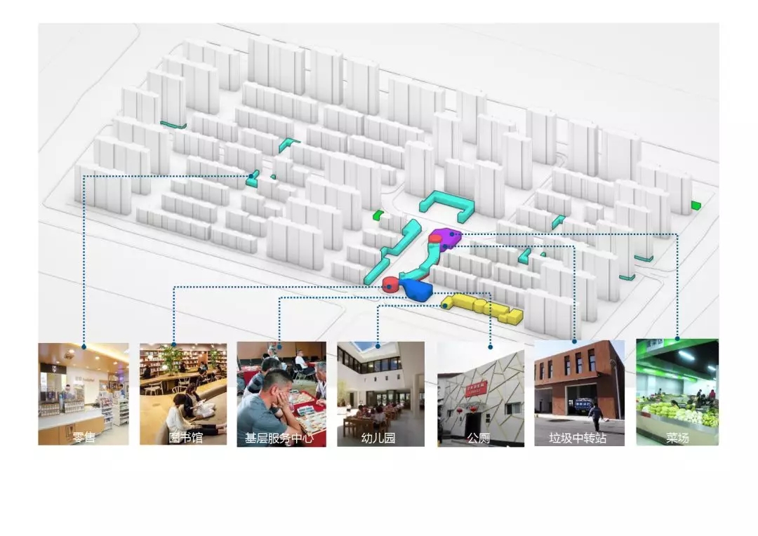 配套体系:商业分级集中布置与社区中心、物业配套等形成小镇中心。