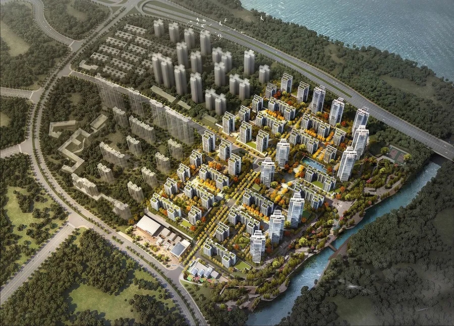都易的社区规划呈现出一贯的内在秩序感:四个组团的道路系统均衡服务各地块;十字景观轴线设置为社区休闲步行带;北侧五栋点式高层,由东向西,从高到低,过渡平缓,与西侧地块呼应;社区从南到北,串联城市商业界面、社区中央景观及滨水景观带……这一系列丰富的考量,有助于实现整个都市街区的归宿感和方位感。