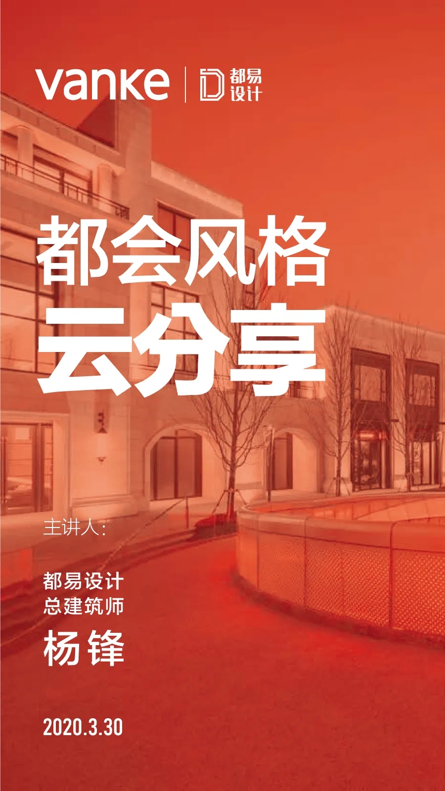 应万科第三管理中心张帅总邀请,都易设计总建筑师杨锋先生于2020年3月30日为万科第三管理中心产品管理口,做主题为“大都会风格与设计创新”的云分享。
