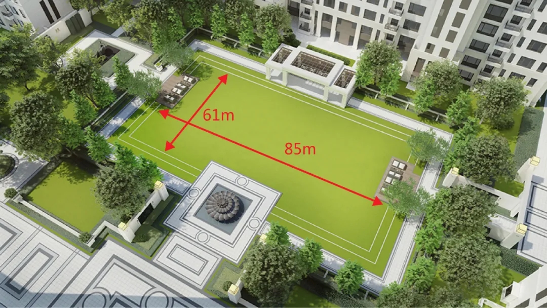本案的公园尺度被界定在85m x 61m(约5000平方米)的中等规模,位于地块的中部偏北。为了让它与都市产生“连接设定”,地块的示范区被设置在北部边界的中部临河位置。于是,示范区与中央公园,共同形成了由北至南的“尊贵纵轴”。整条轴线由中央公园串联。集合全年龄阶段的主题开放公园,创造开放、活力、富有仪式感的社区氛围。